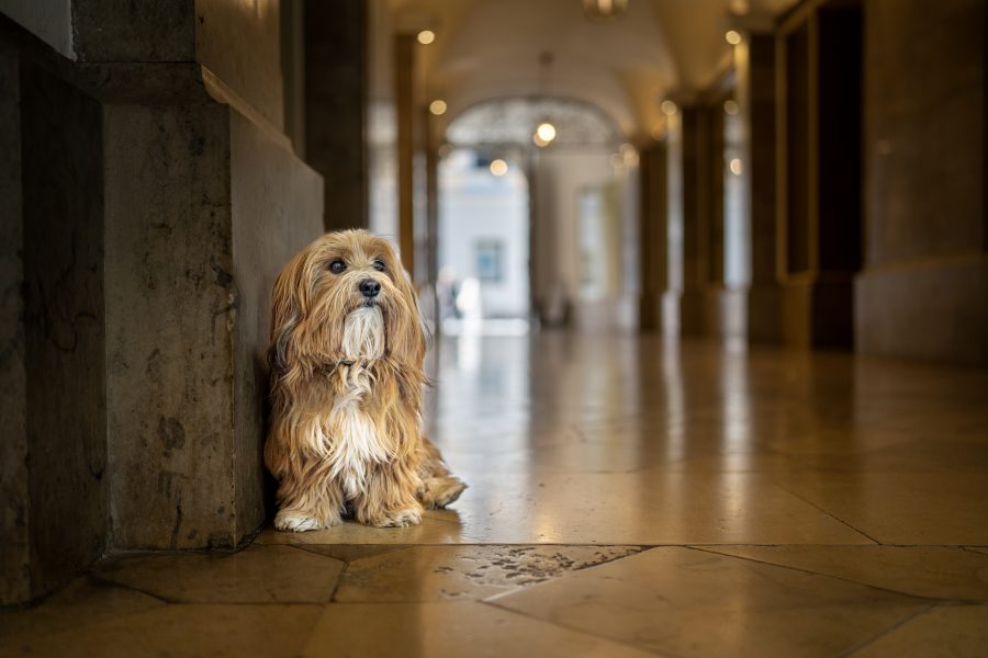 Sogar Regen kann seinen Reiz haben. Nach einem Schauer kann man wunderbar mit Lichtreflektionen in Pfützen arbeiten. Euer Hund, der Himmel oder städtische Lichter bilden sich auf der Oberfläche ab. Durch die Perspektive kann eine Pfütze so großflächig wirken, dass man fast meint, man stünde an einem kleinen See. Allein – direkt im Regen fotografiere ich nicht. Durchnässte Kunden sind nicht mein Traummotiv. Vielleicht bringt ihr zum Fototermin bei Schauervorhersage einen roten oder gelben schlichten Schirm mit? Dann bleibt ihr im Falle eines kurzen Schauers trocken. Nach dem Regen setzt so ein farbiger Schirm oder ein klassisch gelber Regenmatel einen tollen Akzent.
